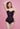 CORSET ENCAJE NEGRO Y ORGANZA PLISADA fondo rosa